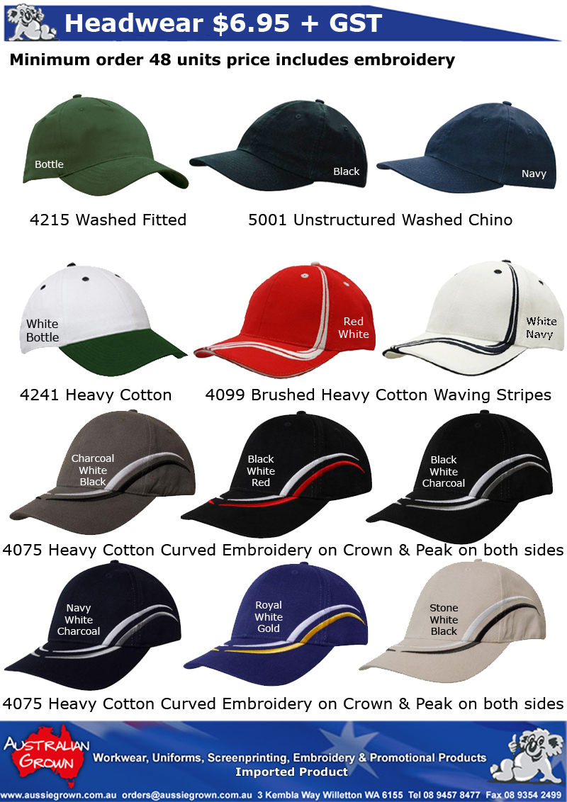 Caps Clearance P2 $6.95 + GST