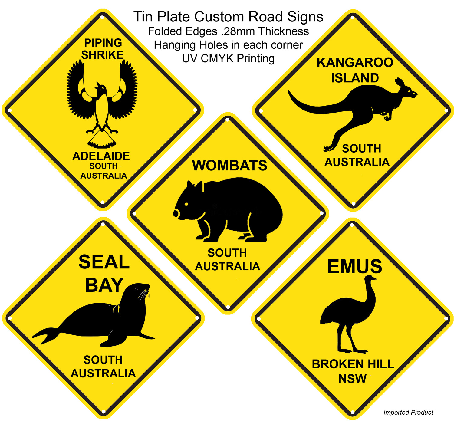 Piping Shrike, Kangaroo, Wombat, Seal & Emu