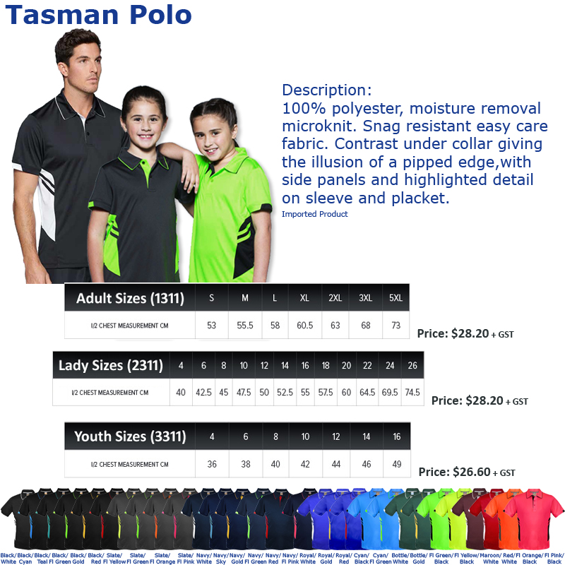 Polo Shirt Tasman Aussie Pacific 1311 Polyester Microiknit