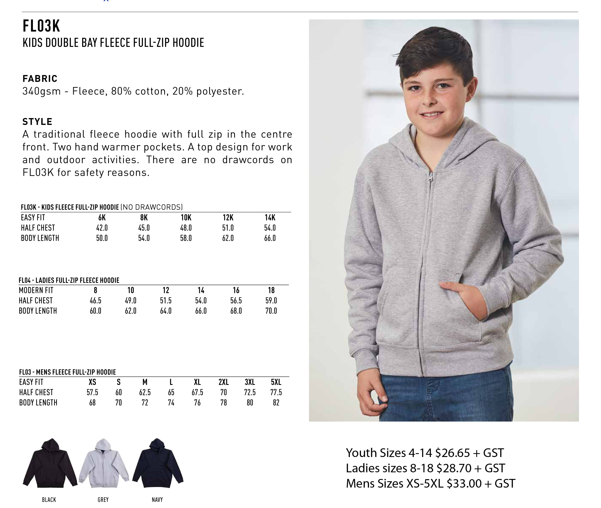 FL03 Zip Up Hoodie From $26.65 + GST